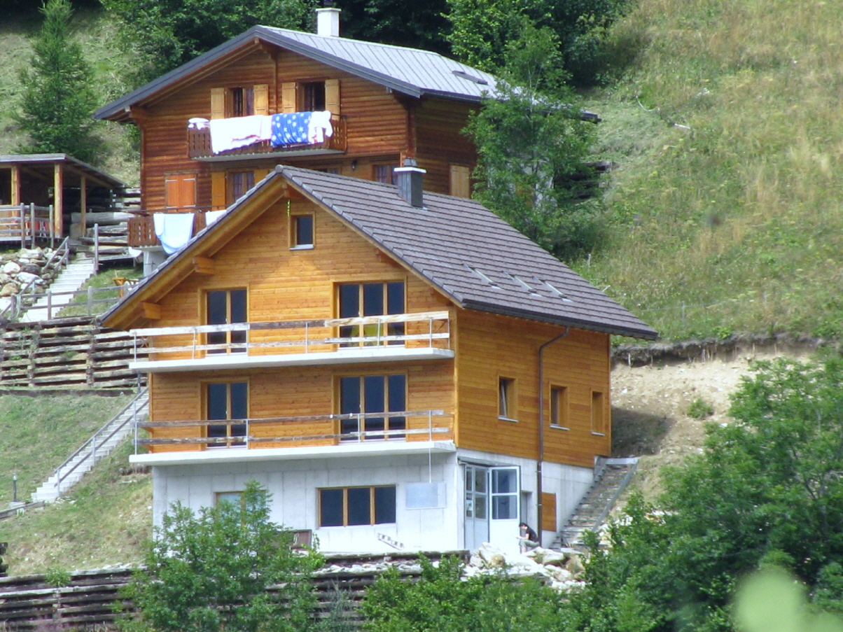 Aussenansicht Chalet Stricha Aufnahme aus südwestlicher Richtung im Bauverlauf